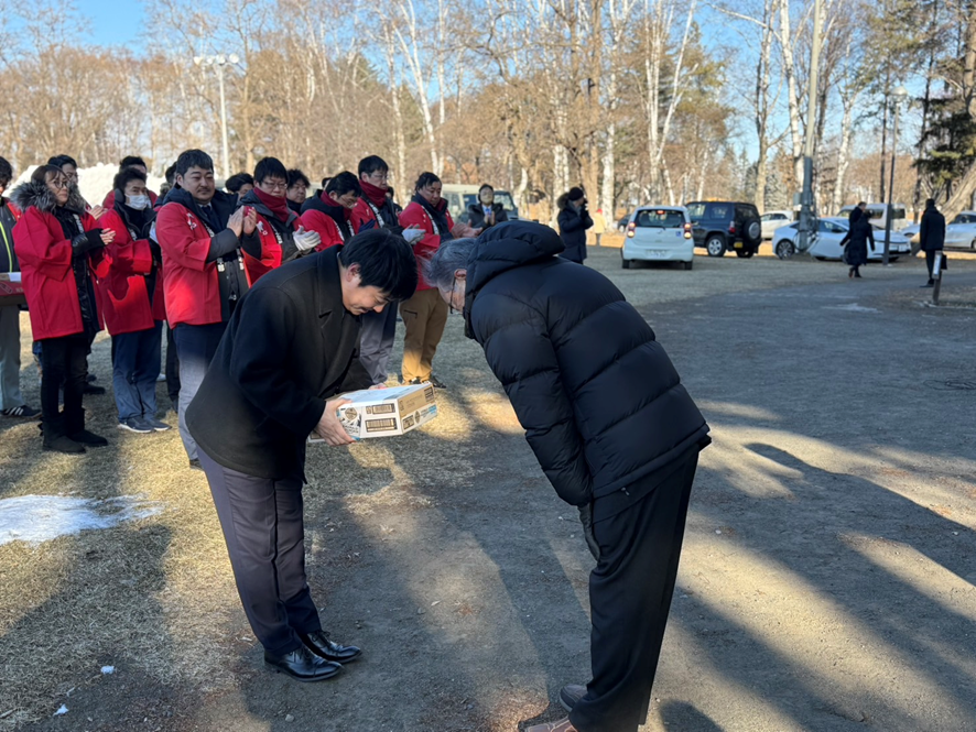 まず始めに、一般社団法人帯広青年会議所 理事長 米澤 祥隆(よねざわ よしたか)君から「連日の作業が続いております。また、寒い日も続いていますので、体調管理には十分気を付けてください!」とのご挨拶がありました。
