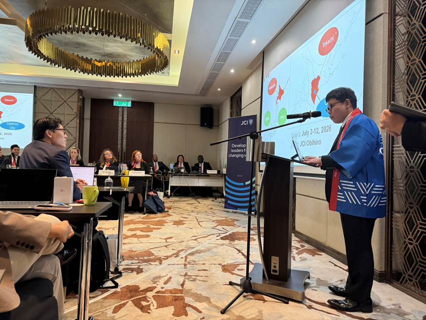 2026年1月11日 Hotel Dorsett Kuala Lumpur(ホテル ドーセット クアラルンプール マレーシア)にて行われましたJCIの理事会 January Board Meeting(JBM)にて今年度行われます第39回JCIアカデミー in TOKACHI OBIHIROのPRを実施しました。現地には一般社団法人帯広青年会議所 理事長 梶原 成悟(かじわら せいご)君、副理事長兼JCIアカデミー実行委員長 片岡 正太郎(かたおか しょうたろう)君、専務理事 山口 幸一郎(やまぐち こういちろう)君が参加しました。JBMは9時から始まり、JCIアカデミーのPRは12時に行われ、JCIアカデミー本会メンバーと一緒に各国会頭の皆様に参加推進を実施しました。
