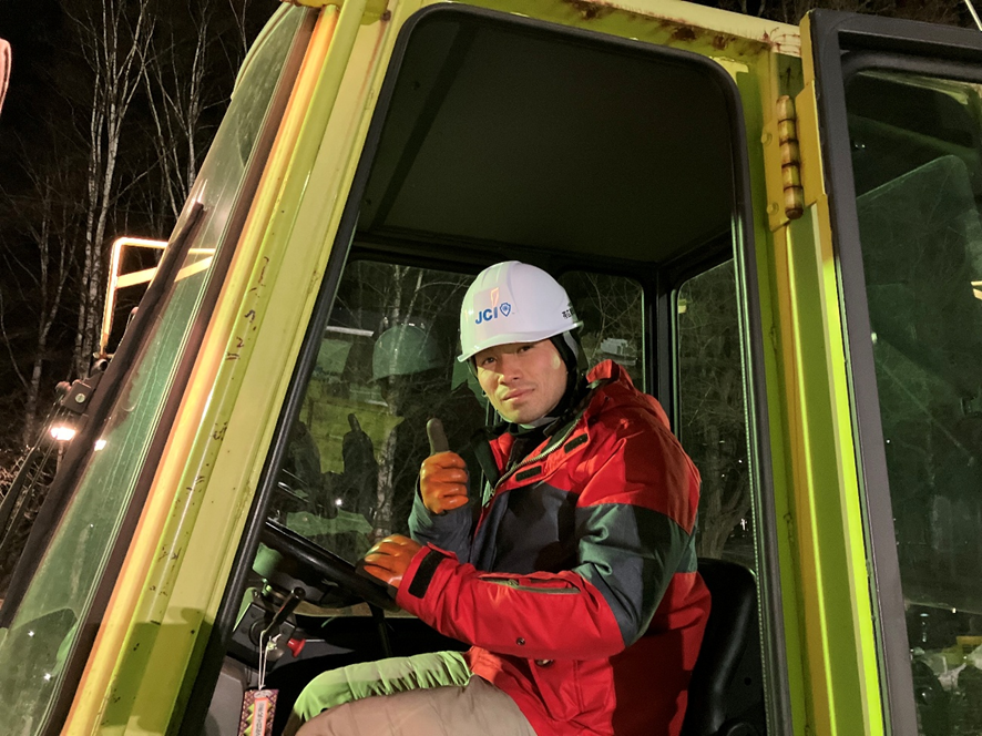 とかちムーンショット委員会 副委員長 小川 将司 君です。 この氷まつり作業のために昨日運転資格を取得しました!今日から安全運転でバリバリ作業をしちゃいます!!
