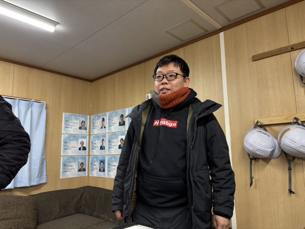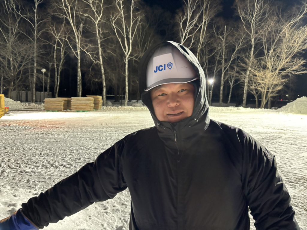 十勝ムーンショット委員会 副委員長 栗原 良平(くりはら りょうへい)君です。キッズスペースの雪の山を作る作業に取り組んでいただいております!
