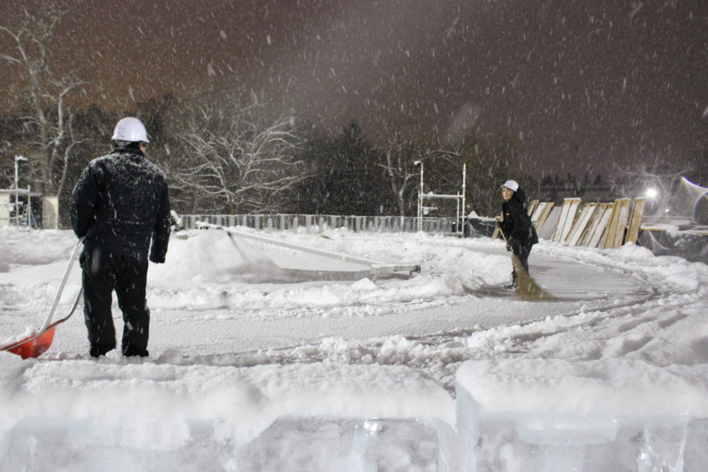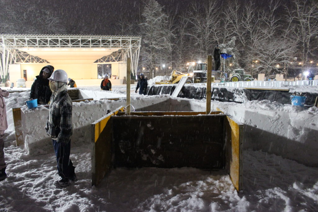 本日の作業が、この氷まつりの「完成形」を決める最後のピースにしよう!!