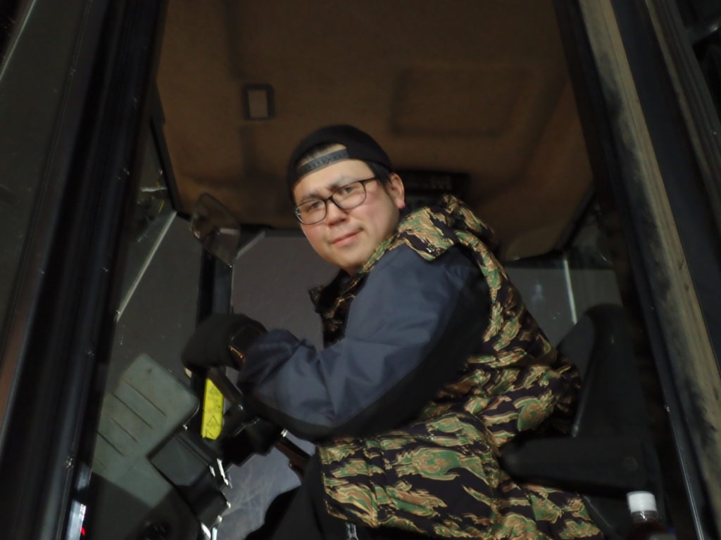 大きな重機を巧みに操るのは、十勝ムーンショット委員会 副委員長 永田 健太郎(ながた けんたろう)君です。