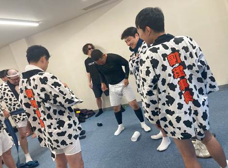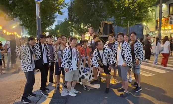 一般社団法人帯広青年会議所 理事長 米澤 祥隆(よねざわ よしたか)君を筆頭に、伝統の牛柄法被を羽織ったメンバーが勢ぞろい!