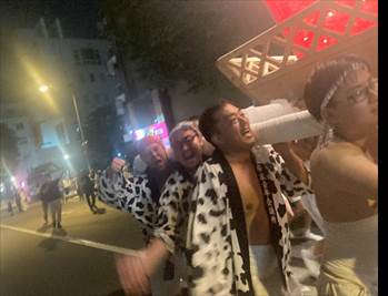 夢降夜に参加したメンバーが集合し神輿の前で記念撮影です。