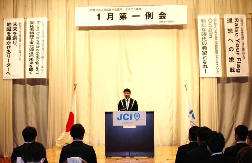 2025年1月4日(土)、1月第一例会が行われました。「未来を創り、地域を輝かせるリーダーへ」をスローガンに、2025年度の一般社団法人帯広青年会議所の運動がスタートいたします!!