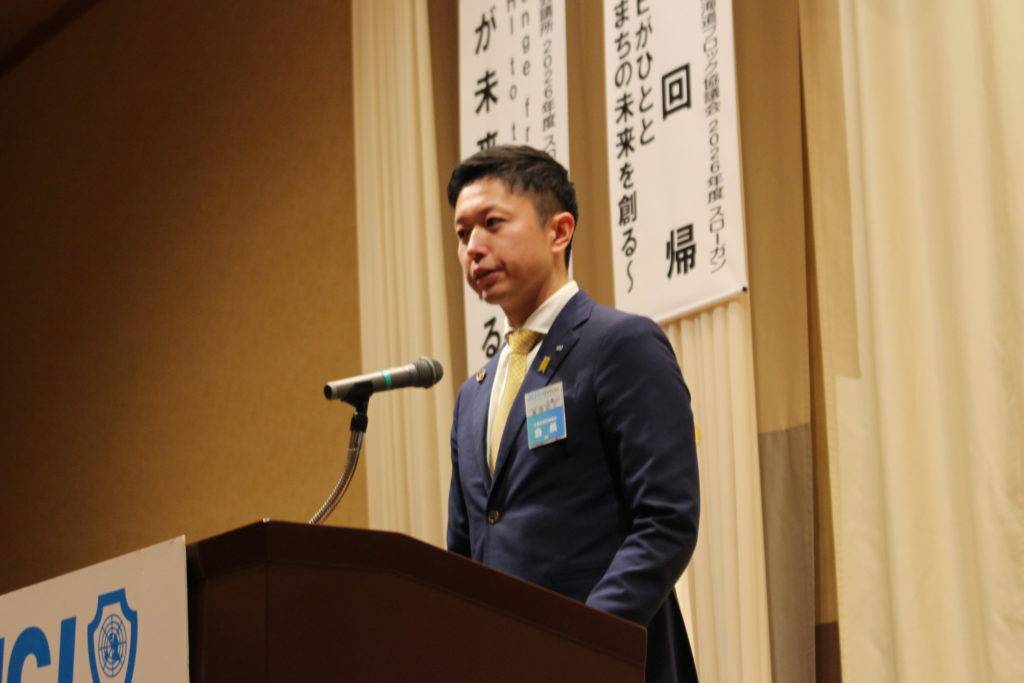 といった想いを込め、2026年度 理事長 梶原 成悟(かじわら せいご)君が熱い挨拶を述べました。
