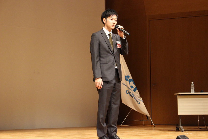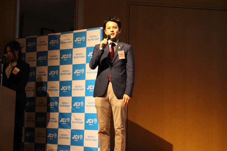はじめに、一般社団法人帯広青年会議所 理事長 米澤 祥隆(よねざわ よしたか)君よりご挨拶がありました。