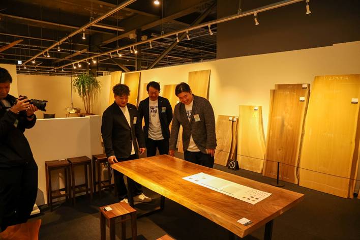 まず初めのエクスカーションとして「旭川デザインセンター」内にて旭川家具の見学を行いました。旭川デザインセンターには、旭川地域の家具やクラフトのメーカー約30社が常設ブースを設けており、多様性に富んだ様々なスタイルの家具が展示されていました。