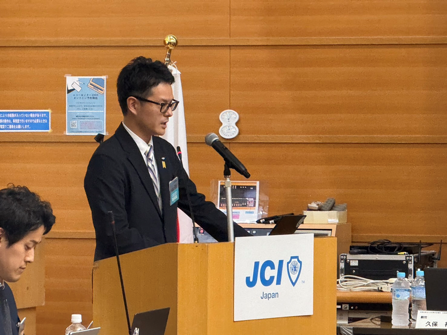 また、一般社団法人帯広青年会議所より出向している、公益社団法人日本青年会議所 北海道地区協議会 国際関係委員会 委員長 津田 祥平(つだ しょうへい)君がJCフェスティバル2025で担当した事業について報告を行いました。
