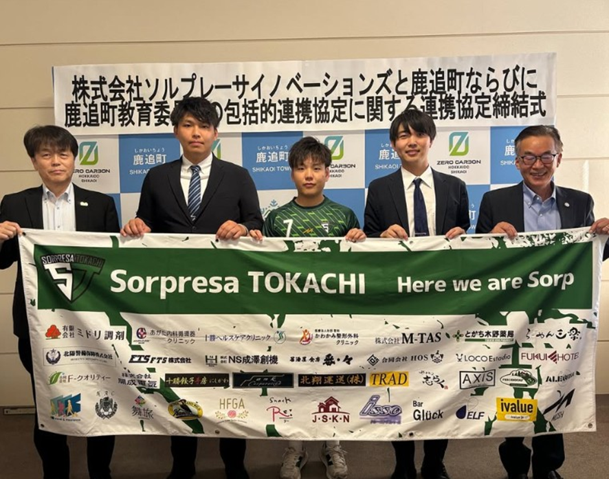 現在は、十勝地域においてフットサルクラブ「ソルプレーサ十勝」の運営を通じ、行政や企業との連携協定を結びながら、地域に根差した活動を行っています。具体的には、学校部活動の外部指導、選手の雇用支援、健康づくりイベントの開催、地域食材を活かした飲食事業の展開など、多角的な取り組みを展開中です。