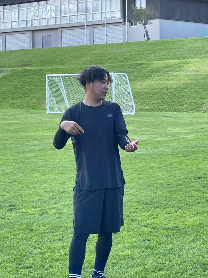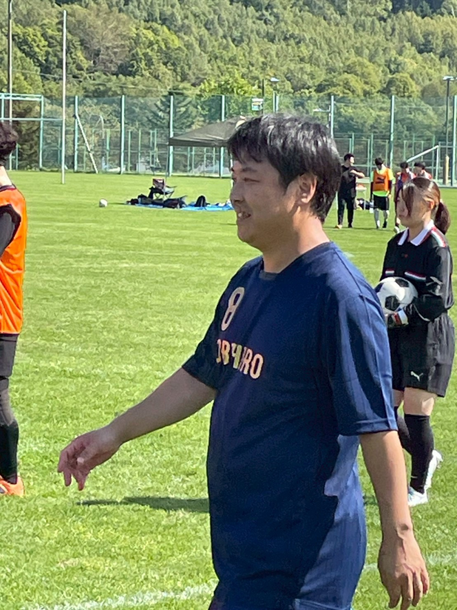 全道から8チームが参加する中、一般社団法人帯広青年会議所 2025年度サッカー同好会 監督 坂本 友紀(さかもと ともき)君と、