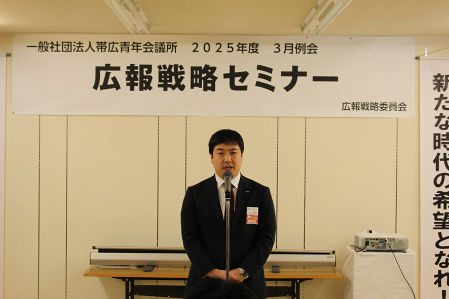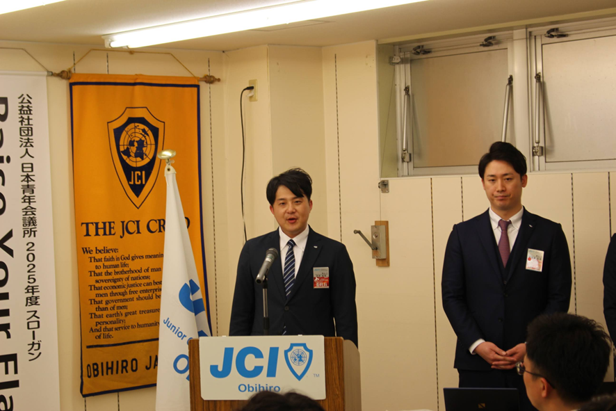 「今年度は広報に特化した委員会を設置させていただきました。帯広青年会議所の運動などを多く発信していくことで、ブランディング構築に努めていただきたいです。」とのご挨拶がありました。