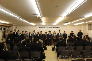 写真左から アカデミー委員会 委員 齊藤 茂樹(さいとう しげき)君、田中 辰昇(たなか たつのり)君、武藤 加奈子(むとう かなこ)君です。