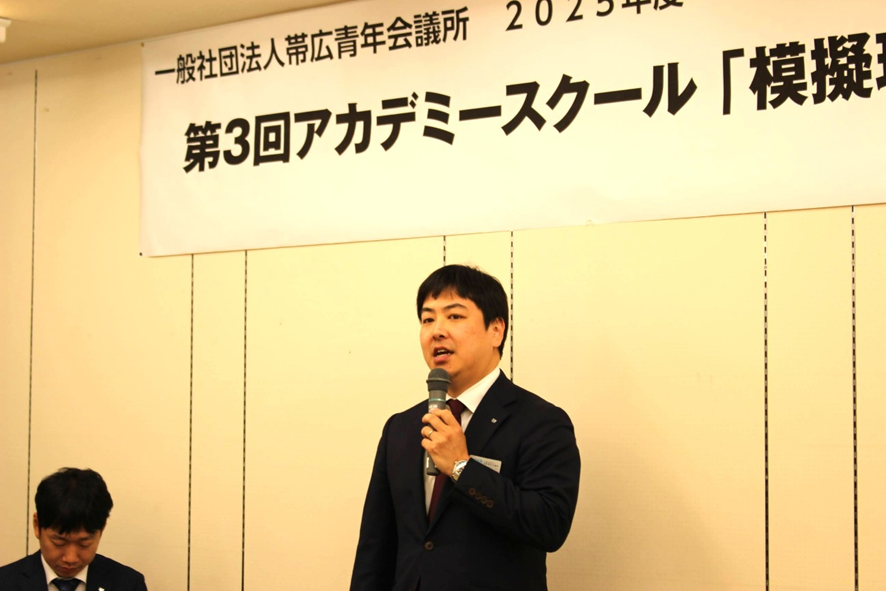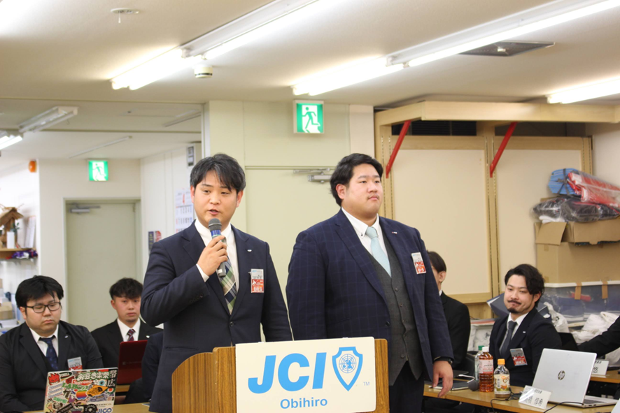 まず始めに、写真中央左 一般社団法人帯広青年会議所 アカデミー委員会 委員長 山口 幸一郎(やまぐち こういちろう)君から