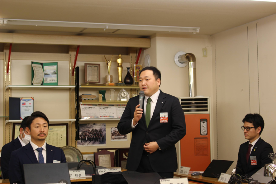 「初めての委員会運営に大変苦労したかと思いますが、委員会メンバーを大事にしながた楽しんでいただければと思います。また、先輩メンバーは、自分たちの考え方や青年会議所の在り方をしっかりと示していただきたいです。」とのご挨拶がありました。
