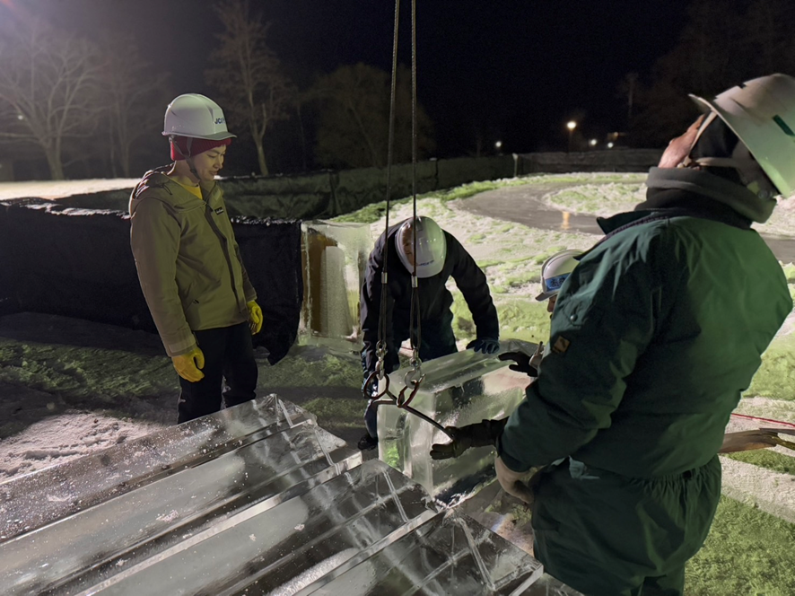 こちらは一般社団法人帯広青年会議所ブースを取り囲む氷柱の設置作業です!