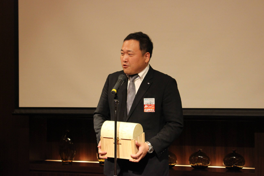 一般社団法人帯広青年会議所 第61代理事長 梶原 一生(かじわら いっしょう) 先輩より締めの挨拶をいただき、お祝いと希望の気持ちで満たされていた祝賀会は終了しました。
