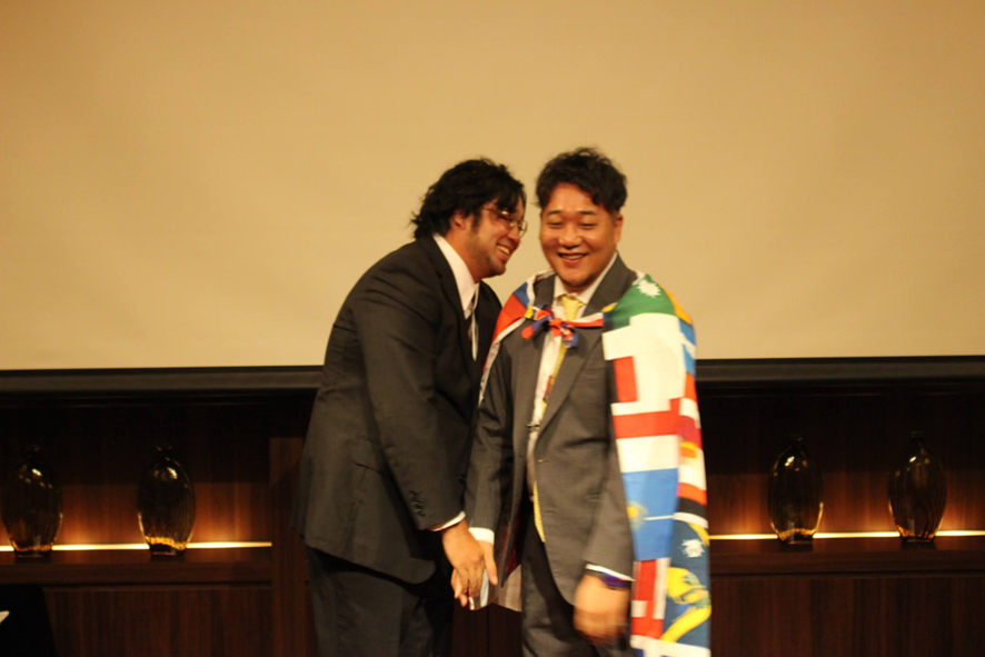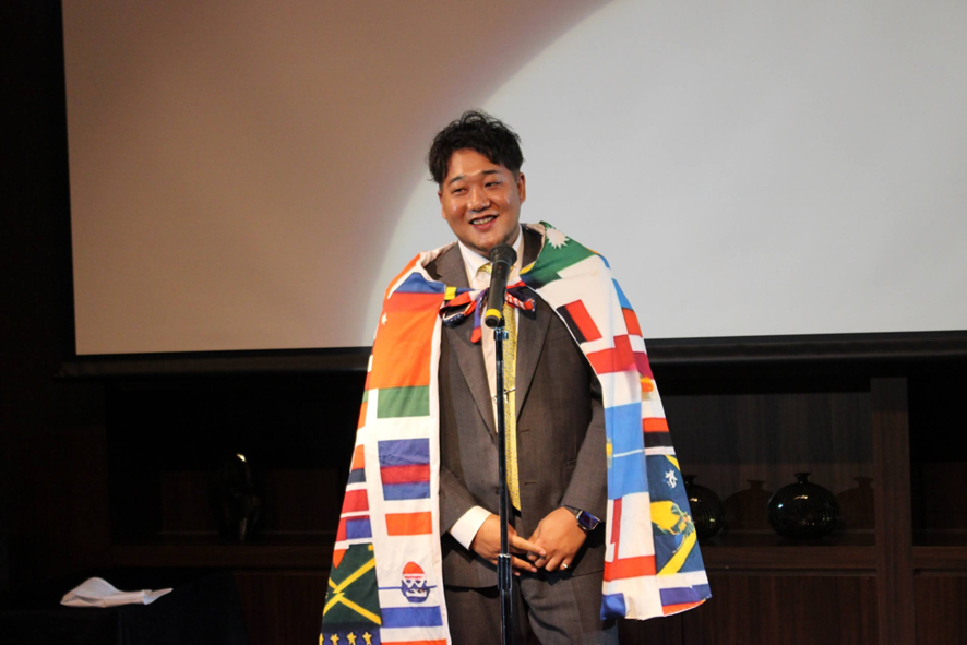 記念品として各国の国旗を描いたマントの贈呈がありました。
