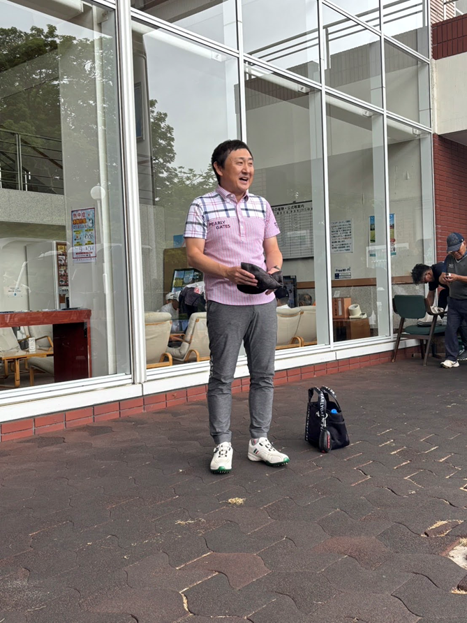 「前回は悪天候の中ご参加いただきありがとうございました。本日はプレーしやすい天候かと思いますので懇親を深めプレーを楽しみながら優勝を目指してください。」との挨拶がありました。