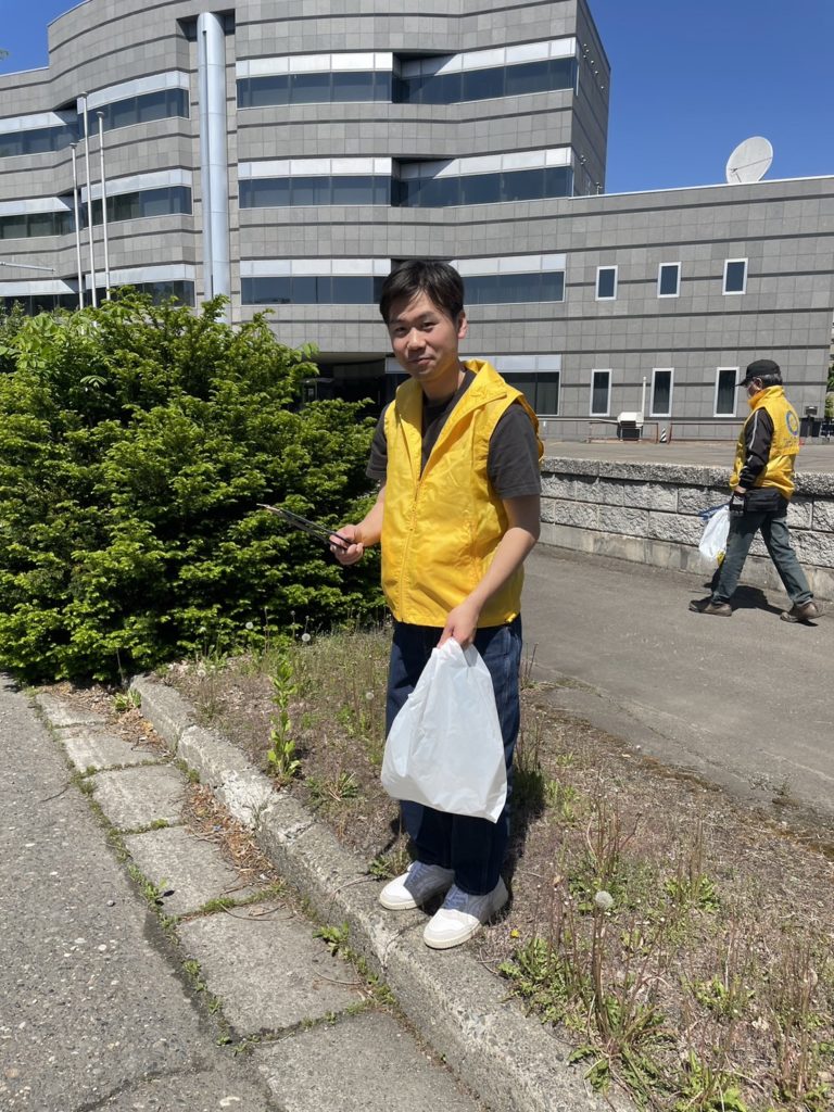 アカデミー特別委員会 佐藤 拓志(さとう ひろし)君です!周囲の安全に気を配りながら、歩道だけでなく車道に落ちたゴミも拾っています!