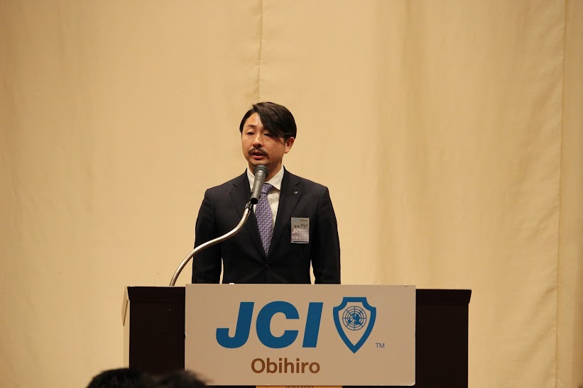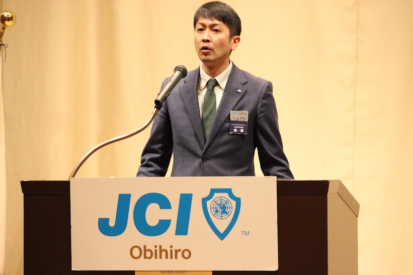 来賓を代表して、公益社団法人日本青年会議所北海道地区協議会 2024年度会長 土橋 広侑 君(つちはし ひろゆき)君から「加藤理事長の力強いリーダーシップの基、帯広青年会議所のメンバーが一丸となってこの地域にインパクトのある力強い運動を展開していくことを期待しております。」と力強い挨拶をいただきました。