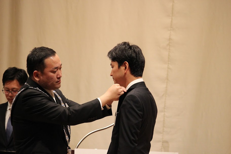 新入会員15名には加藤理事長から、私たちの仲間の証、JCバッジが授与されました!これから、とかち帯広のために挑戦が始まります!!