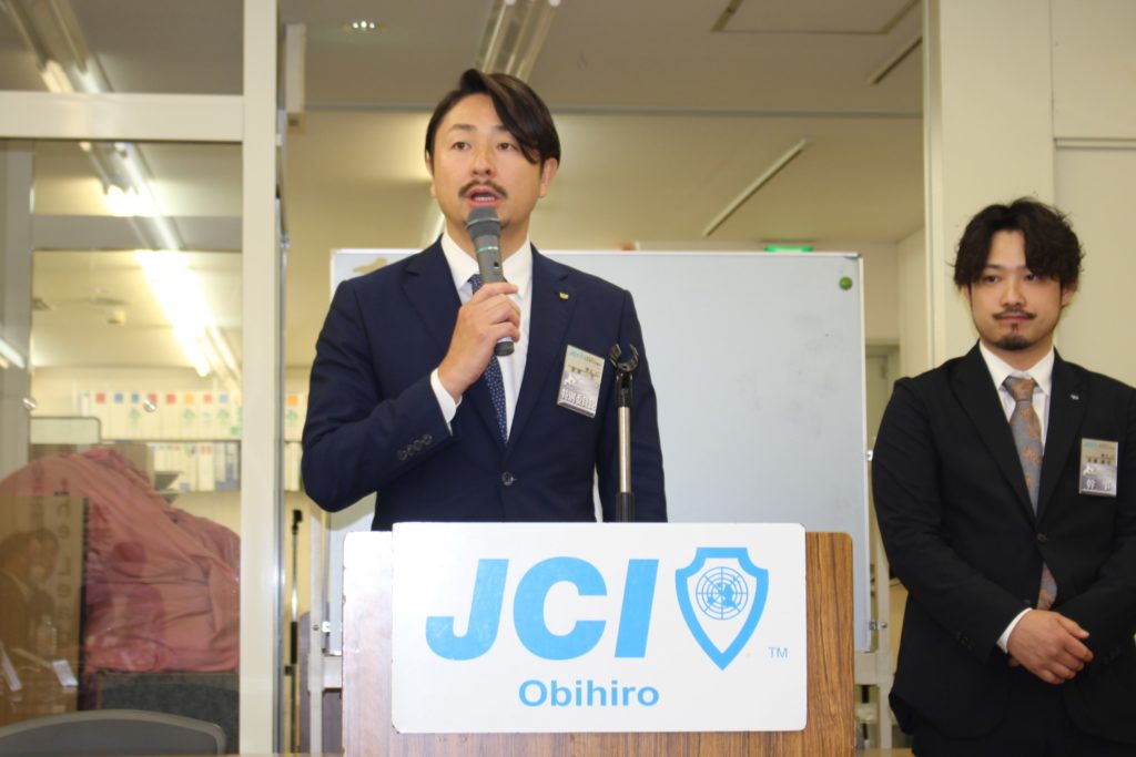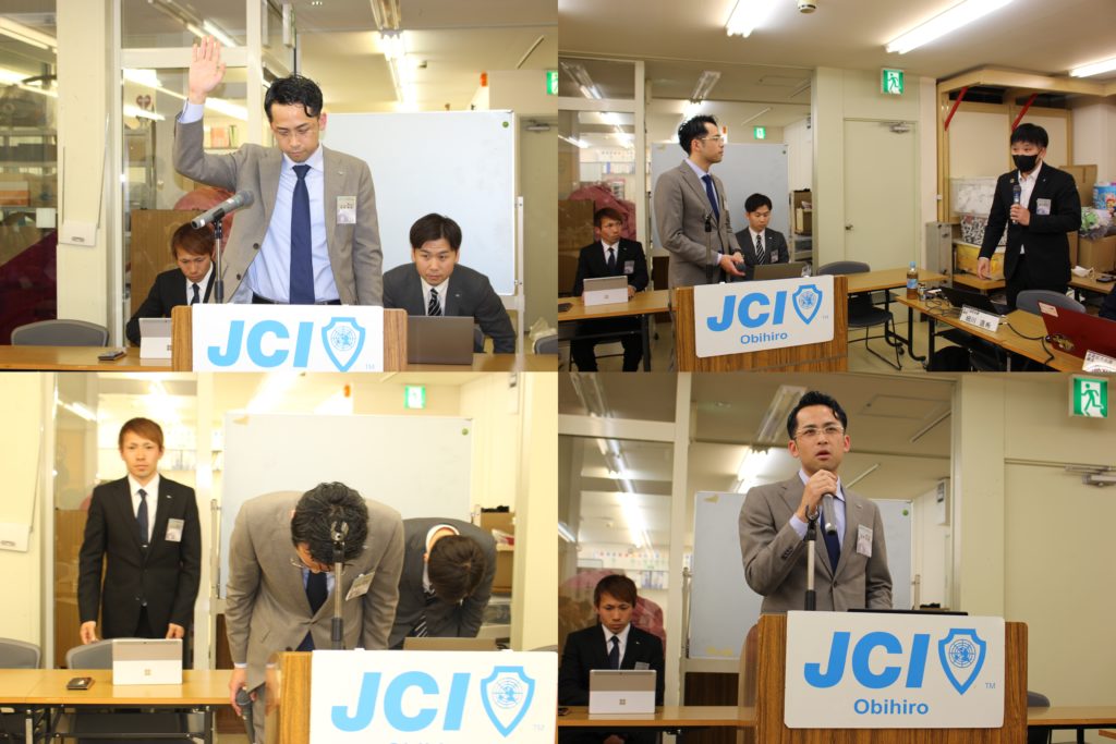 一般社団法人帯広青年会議所 理事長 加藤 貴裕(かとう たかひろ)君からは「先日開催された4月例会OB合同例会でのファンクションを見て新入会員同士の団結力の素晴らしさに感銘を受けました。本日の模擬理事会 審議編においても今日までの労力、人間関係は決して無駄になることはありません。緊張している方も居ればワクワクしている方も居ると思いますが、本日の時間が我々、一般社団法人帯広青年会議所メンバーにとっても貴重な学びの場となることを楽しみにしております」と挨拶をいただきました。