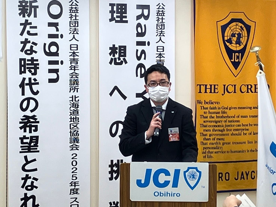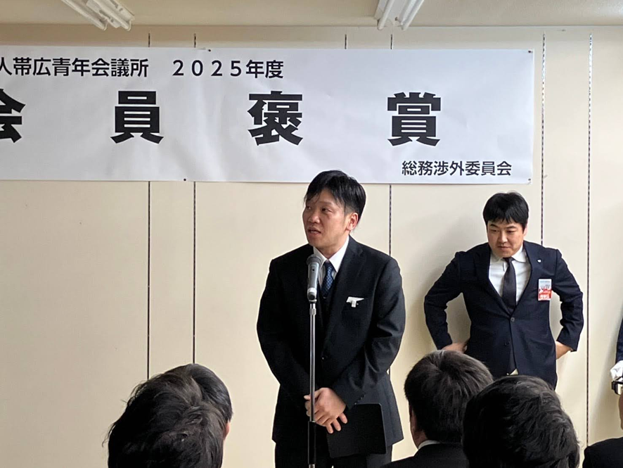 まず始めに、総務渉外委員会 委員長 石原 究利雄(いしはら くりお)君より「2024年度のすべての例会に出席された方や、一般社団法人帯広青年会議所や出向先で2024年度の重要な役職を全うした皆様に感謝の意を表すると共に、表彰させていただく事業となります。また、参加されたメンバーもその姿を見て2025年度の例会等に意欲的に参加していただきたいと考えております。」との趣旨説明がございました。