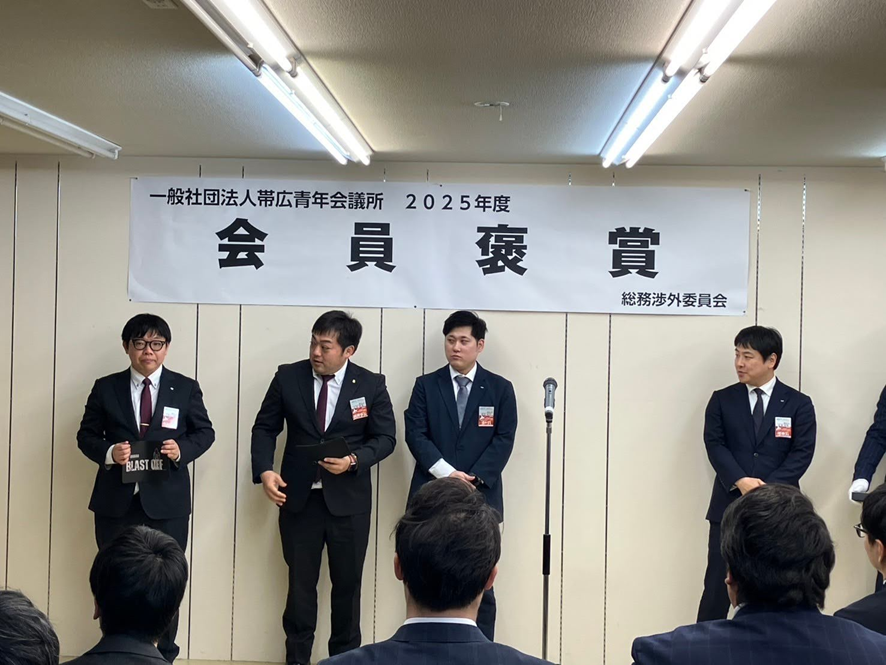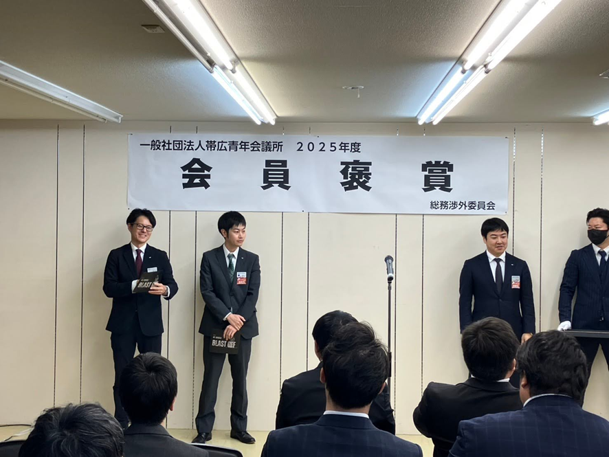 2024年度のすべての例会に出席された方や、一般社団法人帯広青年会議所や出向先で2024年度の重要な役職を全うした皆様を褒賞させていただく事業となります。