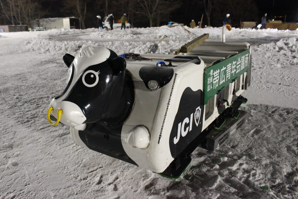 突如会場に姿を現したのは、帯広青年会議所伝統の回転そりです!!