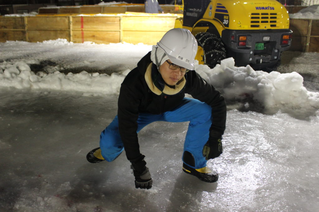 重機を操ることは誰にでもできることではありません!氷まつりの準備には貴重な存在です!!