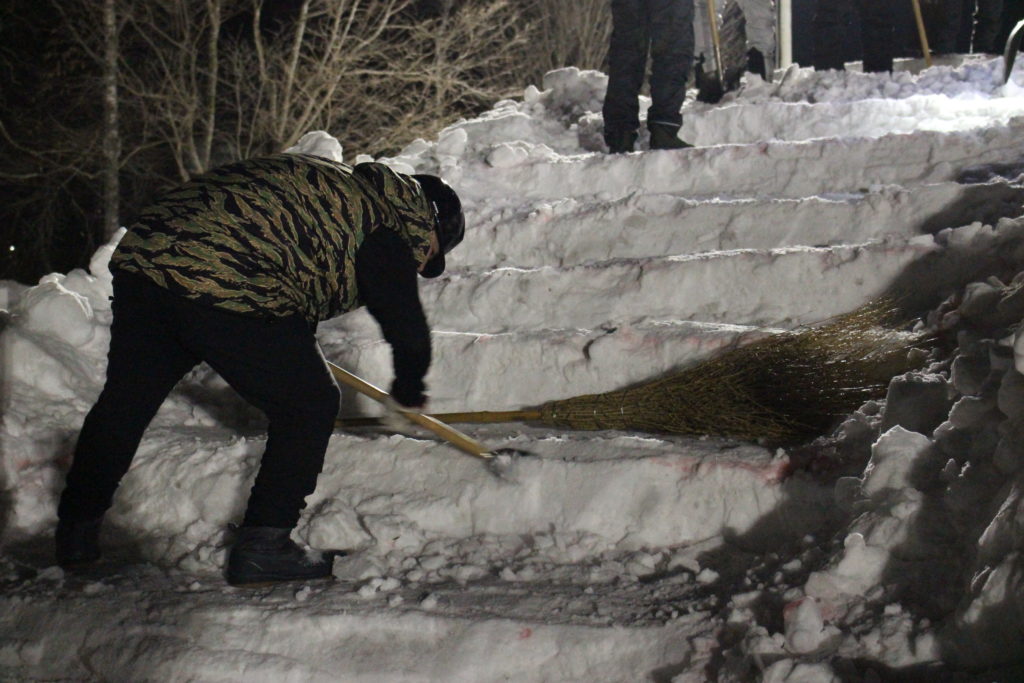 続いて、まつり運営会議 議長 小濱 隆英(こはま たかひで)君より「本日から雪山の滑り台の成形を行います!作業のボリュームがありますので、皆様で協力していただき、良いものが作れるようにご協力よろしくお願いいたします!!」と、挨拶がありました。