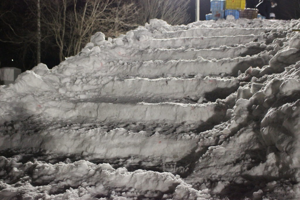 スコップで掘ったあとの雪がゴロゴロと硬くなっています!