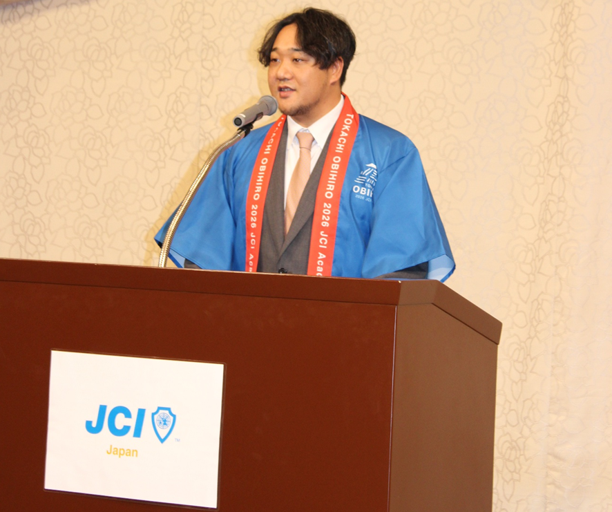 はじめに、一般社団法人帯広青年会議所 理事長 梶原 成悟(かじわら せいご)君より「公益社団法人日本青年会議所の事業であるプレJCIアカデミーに参画していただくことで、メンバーの意識を高め、7月の本番ではメンバー全員で一丸となってJCIアカデミーを成功させましょう」とご挨拶がありました。