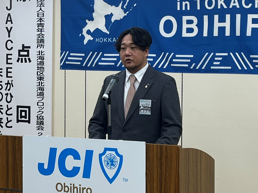 開催地理事長挨拶は、一般社団法人帯広青年会議所 理事長 梶原 成悟(かじわら せいご)君が務めました。「十勝帯広へようこそお越しくださいました。プレJCIアカデミーを通じて、モジュールを体験していただき、7月に向けて準備するとともに、ご参加いただいた皆様に十勝帯広の魅力が伝わるようにしていきたいです。」と話をされました。