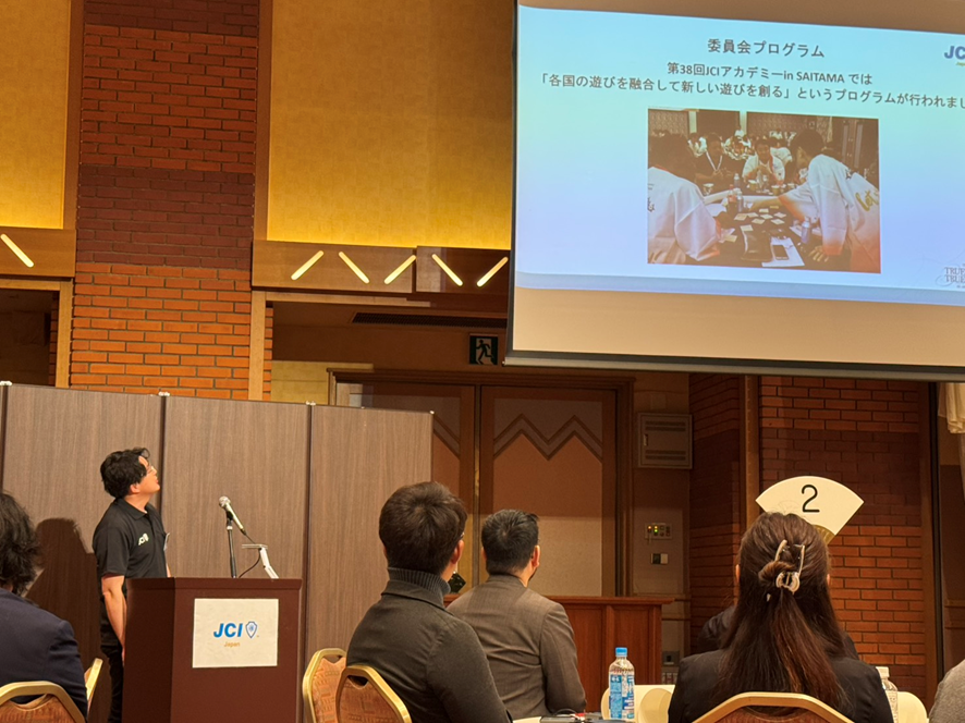 その後、公益社団法人日本青年会議所JCIアカデミー委員会へ出向しております副委員長 西野 智暁(にしの ともあき)君がJCIアカデミーの説明を行いました。「多くの方々にJCIアカデミーの理解を深めていただき、ぜひ本番の7月に向けて参加をしてほしいです。世界中に友人ができるチャンスです!」と気合を入れてJCIアカデミーの魅力をプレゼンいたしました。
